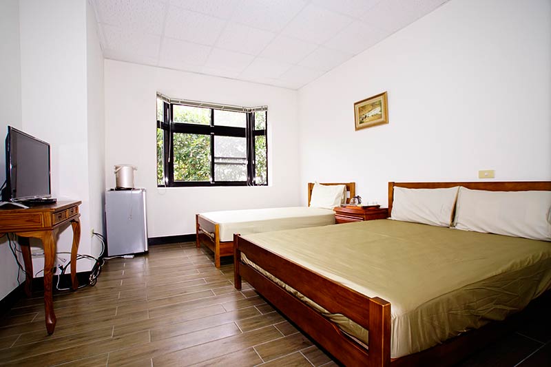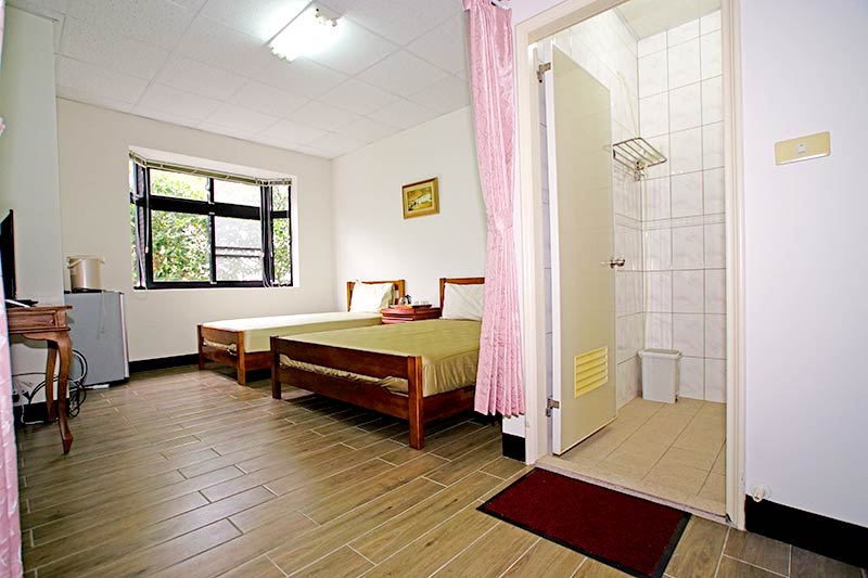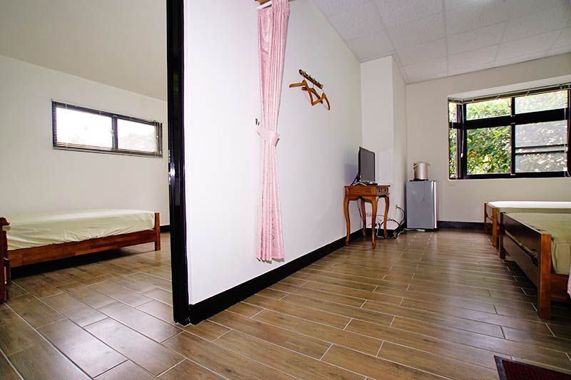 含一組雙人床及三組單人床。另加一套衛浴設備,可供五人住宿。